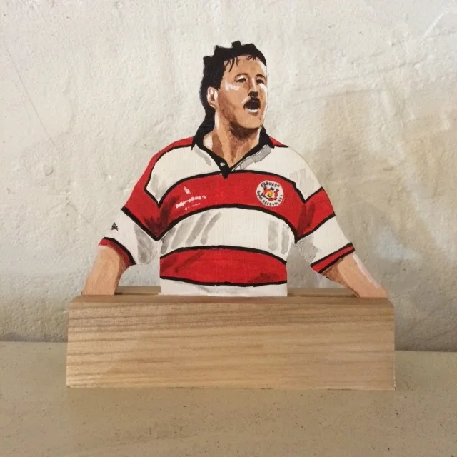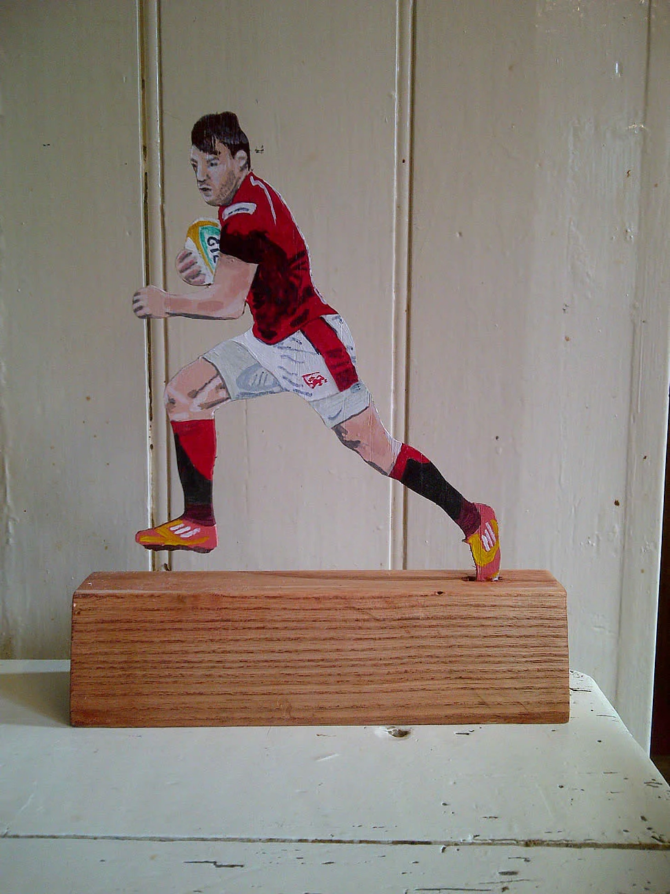 "It was not until Bill Beaumont came to speak at Ledbury RFC in 2012 that I decided to resurrect the idea, giving him a figure as a thank you. It was well received and as a result I got weaving again, but this time produced action shots of famous rugby players, which suddenly gave them dynamism which had been lacking before. Also my painting technique and knowledge improved dramatically with practice."